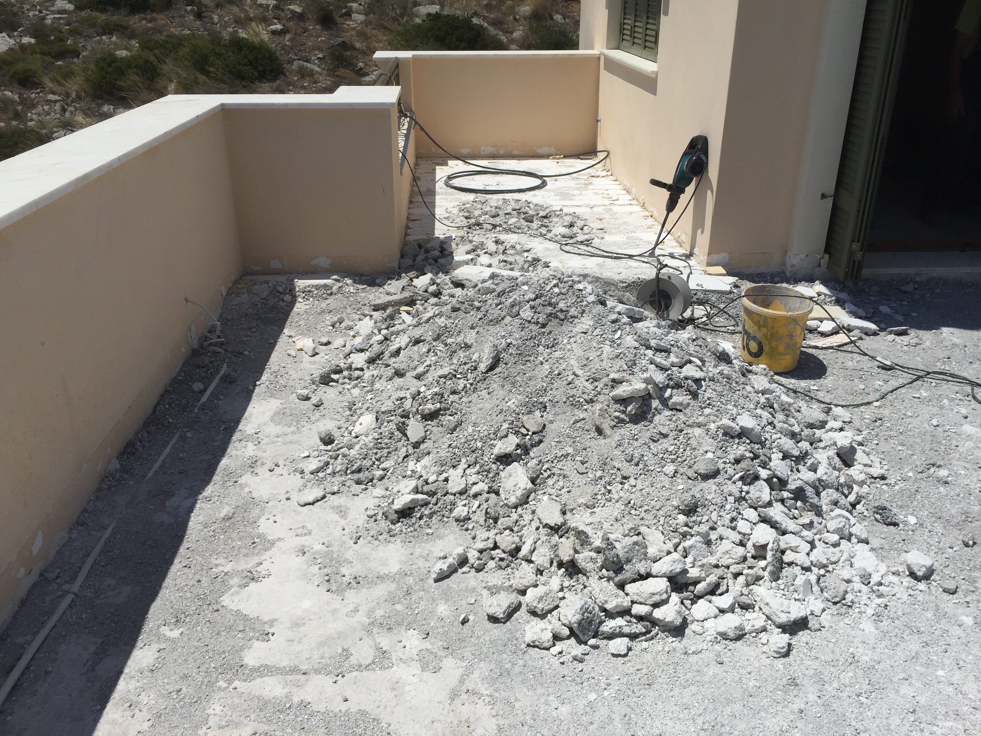 - την αποξήλωση του προβληματικού δαπέδου στο δώμα και τον εξώστη του τελευταίου ορόφου.