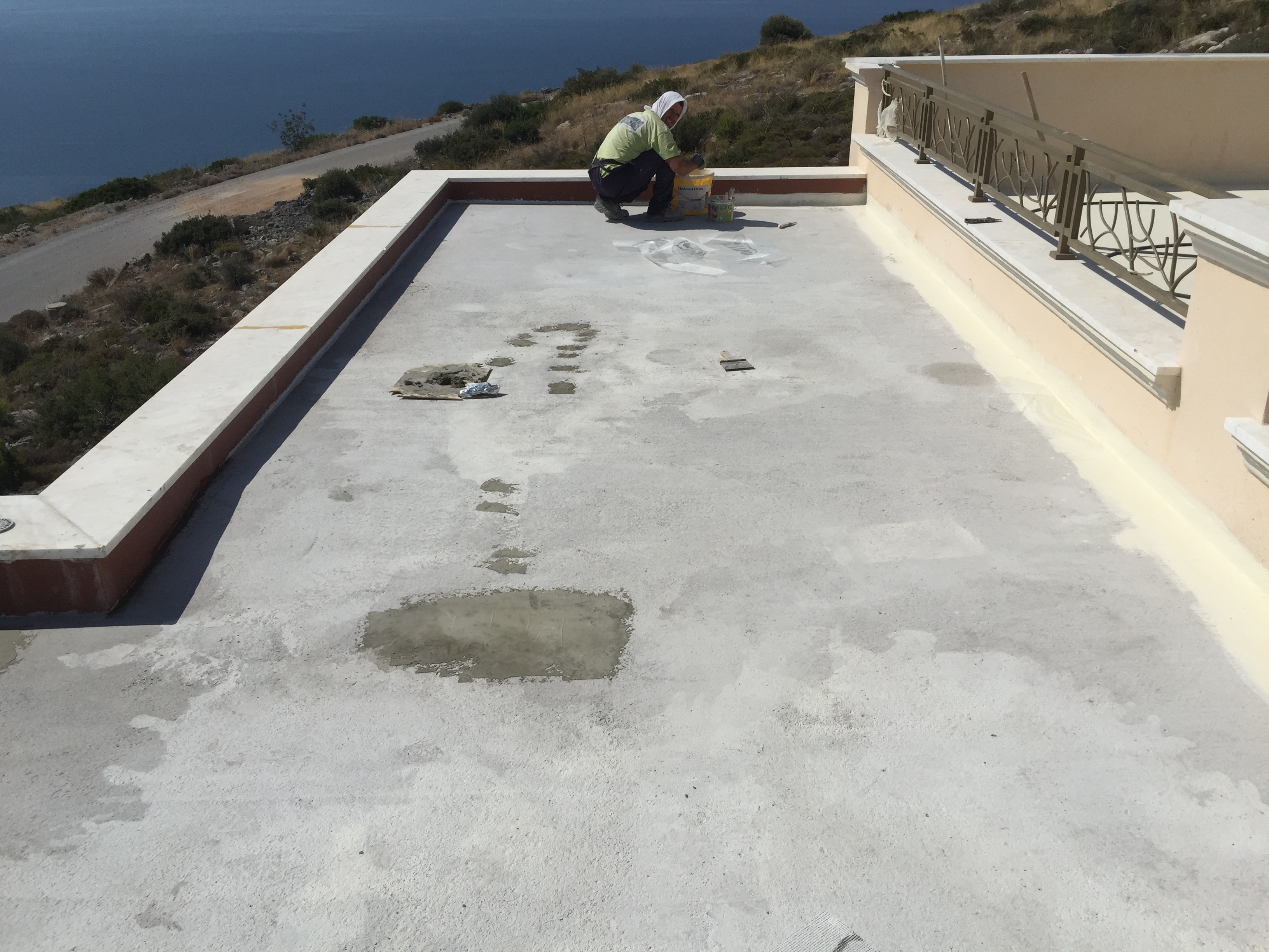 - την εφαρμογή κατάλληλων μονωτικών υλικών τσιμεντοειδούς βάσης Durostick Hydrostop Roof με υαλόπλεγμα για οπλισμό.